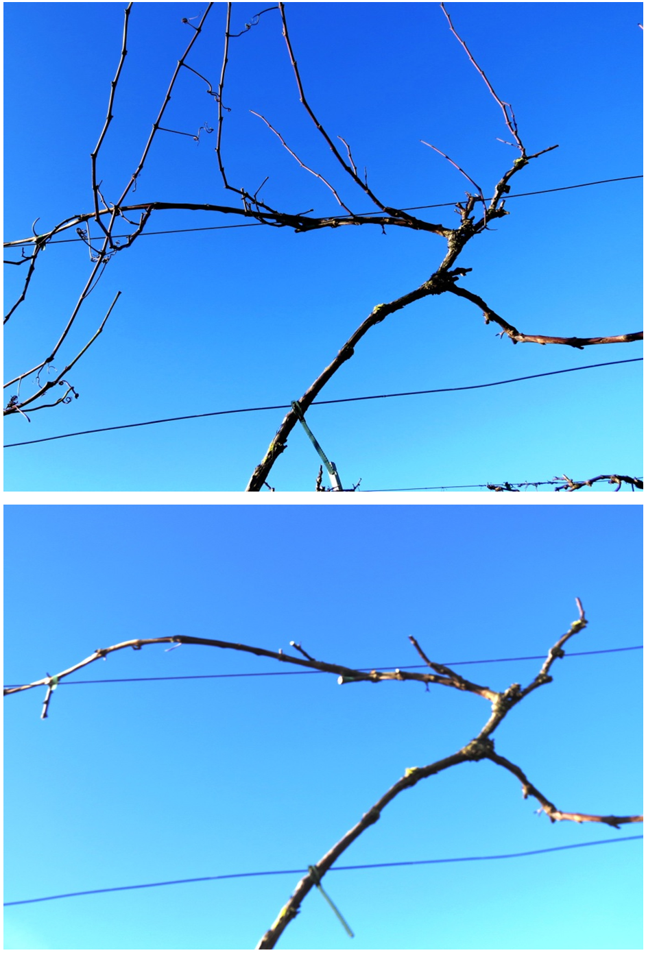 Op de onderste foto de gesnoeide hoofdtak, klaar voor de lente.